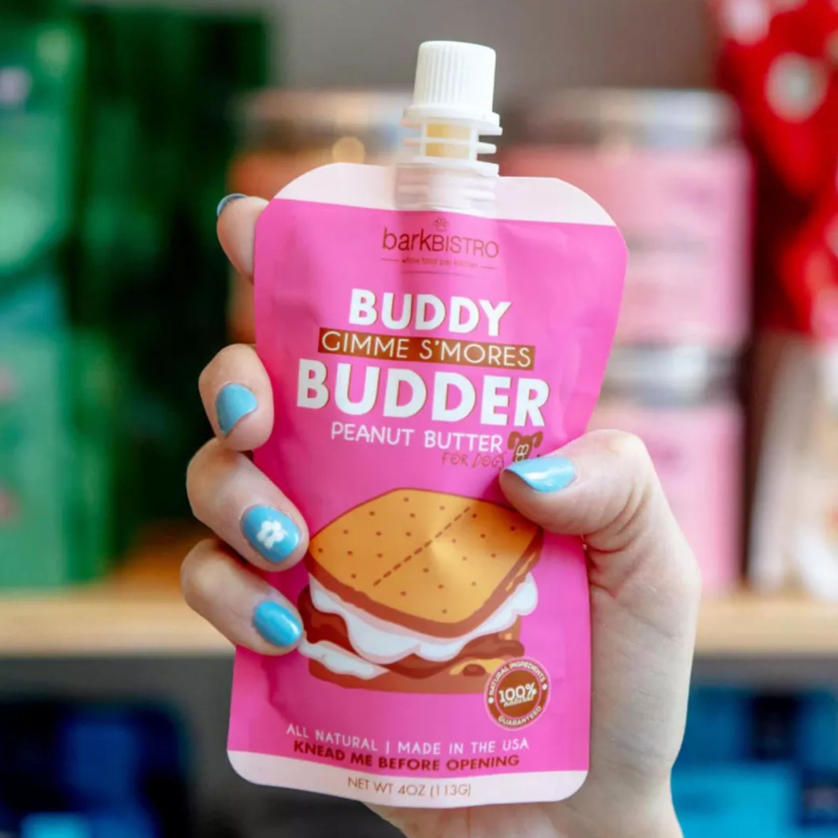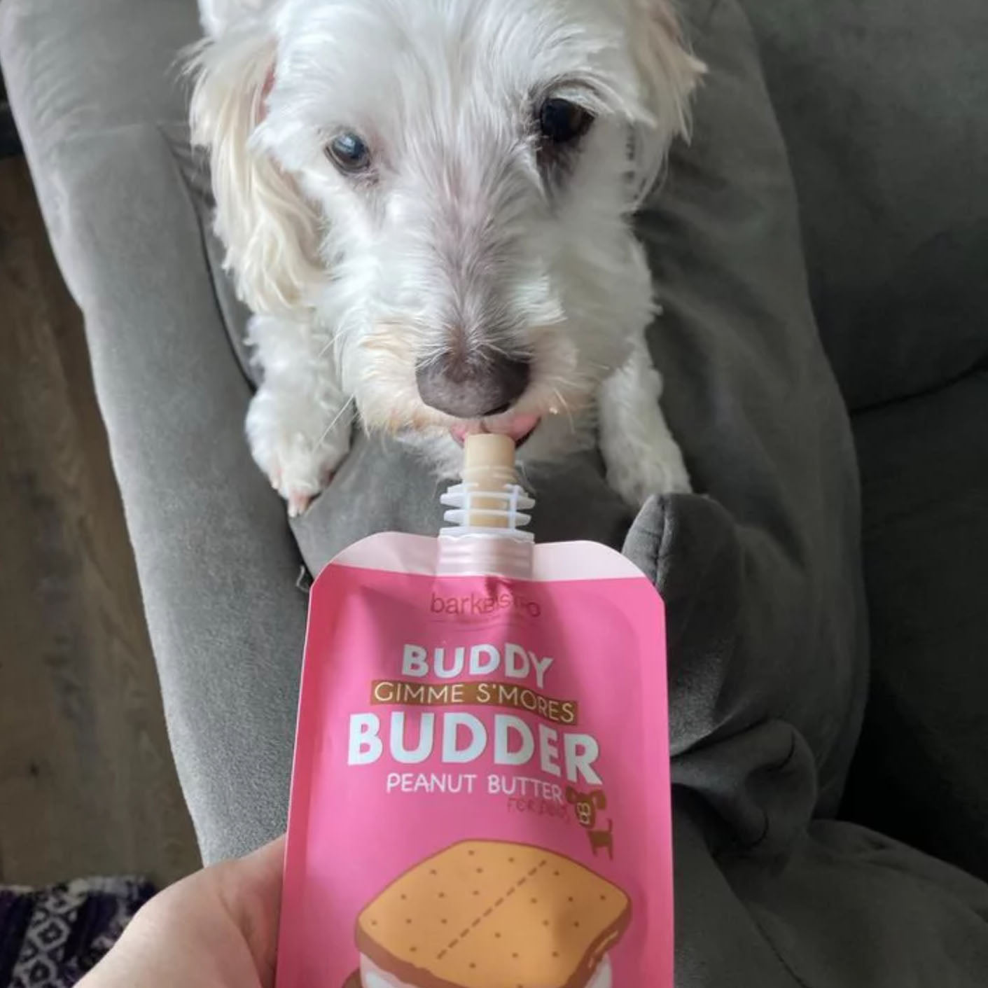 Perfect for training, traveling, or on-the-go enrichment, our dog-friendly peanut butter is made with no hydrogenated oils, palm oil, xylitol, added sugars, salt, or artificial ingredients. Just clean, tasty fun your dog will love to lick straight from the pack or added to toys. Flavor of s'mores
